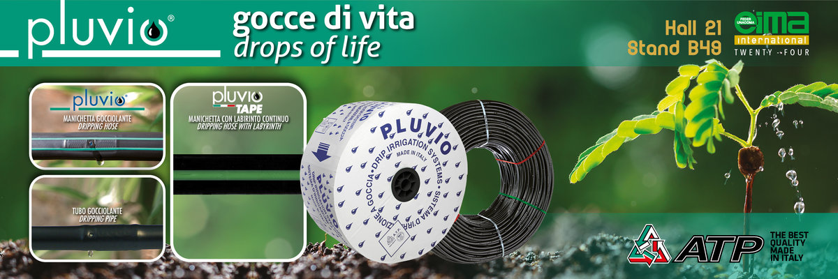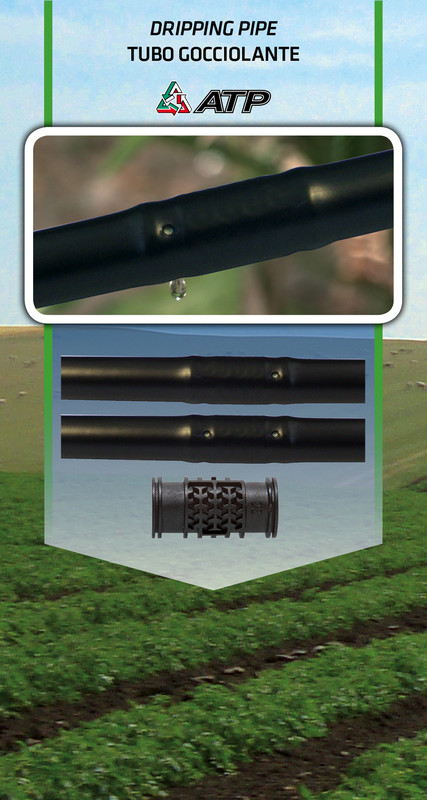 A.T.P. Advanced Plastic Technologies S.r.l. is an Italian Company leader in the production of Drip Irrigation System: - “PLUVIO” Dripping Hose with dripper - “PluvioTAPE” Dripping Hose with labyrinth - No-Compensating “ATP” Dripping Pipe - “PC-DRIP ATP AS-DS” with constant and self-compensating, anti-siphon and anti-drain dripping device