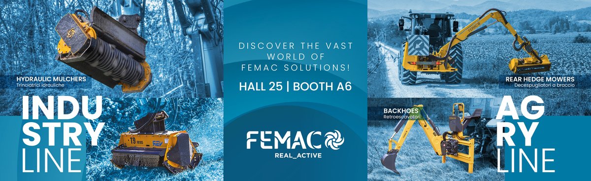 Femac designs builds and markets worldwide hydraulic mulchers for excavators and mini-excavators, rear edge mowers and backhoes for tractors for a wide range of uses and needs, from agri to garden. Made in Italy design and construction, are managed within the Trestina plant in Città di Castello, guarantees quality and performance of the entire range.