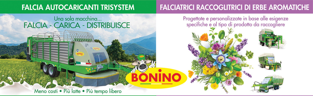 Bonino srl è stata fondata nel 1946 da Antonio Bonino. Negli anni '70, la sua visione innovativa si concretizzò con la produzione del primo Falcia Autocaricante Semovente. Successivamente il figlio Matteo progettò Falcia Autocaricanti Trainati sempre più adatti a un mercato in continua trasformazione. Inoltre sviluppò soluzioni innovative per la raccolta delle Erbe Aromatiche. Oggi, con il contributo dei figli Dario e Cristina, l'azienda continua a espandersi ed esporta i suoi prodotti in oltre 40 paesi nel mondo.