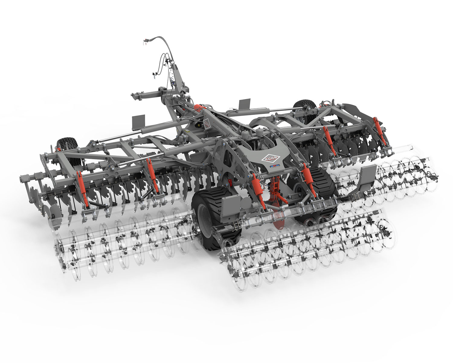 In cosa consiste l’innovazione: l'erpice rotante è alimentato da una corrente continua a 700 V proveniente dal veicolo traente. Ci sono cinque motori elettrici, ognuno dei quali aziona un ingranaggio di ingresso. I rotori sono collegati cinematicamente tra loro da una serie di ingranaggi, come negli erpici tradizionali. Quindi, gli ingressi dei cinque motori elettrici sono controllati elettronicamente per fornire esattamente i parametri di lavoro richiesti, indipendentemente dal carico sul singolo ingranaggio.
