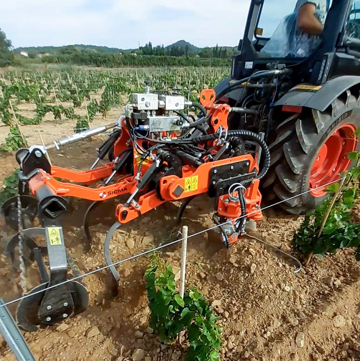 Coltivatore per la contemporanea lavorazione del terreno dell'interfila e delle aree sotto vigneto.